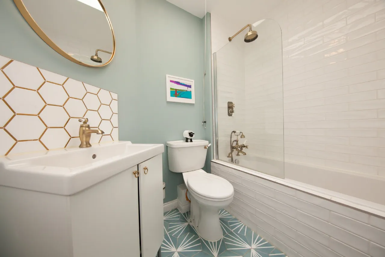 Bathroom 2.21m x 1.82m Recently upgraded, tiled floor, wc, wash hand basin set into vanity unit, bath with shower attachment over, Velux roof light, heated towel rail