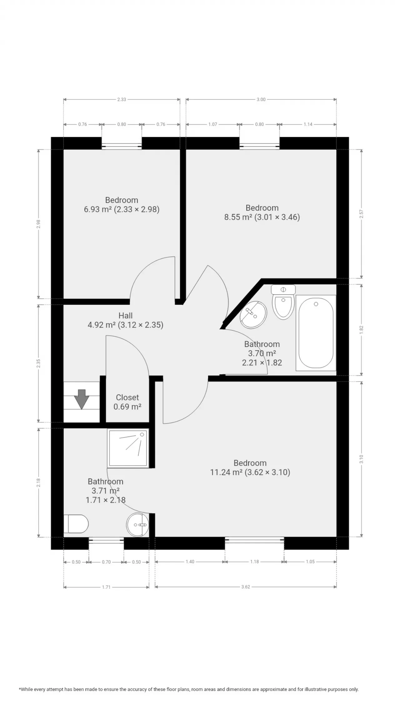Floor area of approximately 92qm (990sq.ft.) approx.