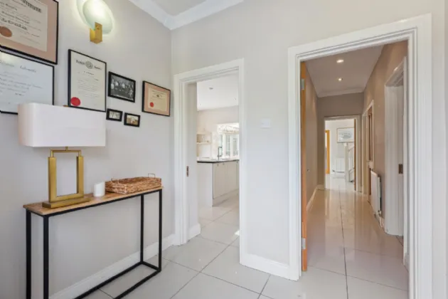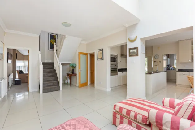 Extending to a very spacious 2,446sq.ft. approx., the living space is flooded with natural light from the large windows and Velux roof lights, with a further sense of space being afforded by the high ceilings on the ground floor. The accommodation comprises of entrance hall, large open plan kitchen/dining/family room, utility room, guest wc, study, bedroom four with en suite and large living room on the ground floor. Upstairs there is a spacious landing with hot press and three large double bedrooms. Two of the bedrooms share an en suite. The main bedroom boasts a large en suite with bath and separate shower and walk in wardrobe with lots of storage.