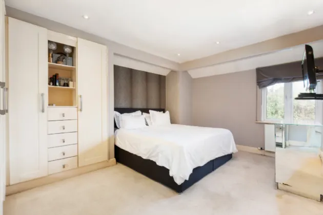 Bedroom 1 3.62m x 5.93m Double room, carpet flooring, window to front, recessed lighting, fitted wardrobes.