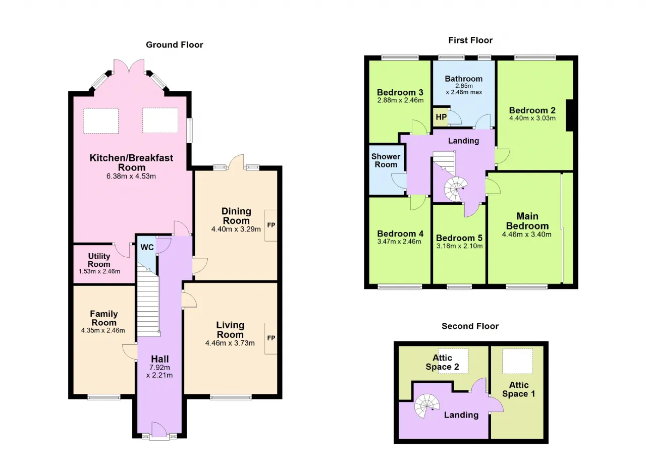 Upstairs there are five bedrooms, four doubles and one single. A full bathroom and separate shower room complete the accommodation on this level.
