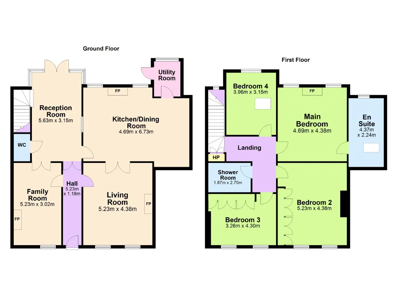 Main Bedroom 4.69m x 4.38m Very spacious double bedroom with wooden flooring and recessed lighting, cast iron fireplace and two windows overlooking the rear garden. Good range of built in wardrobes. Door leading to the ensuite.