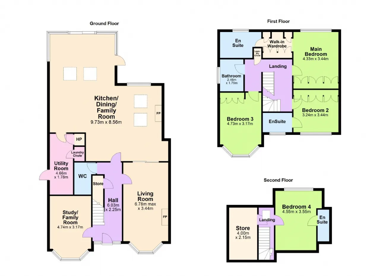 Upstairs, there are four well laid out and spacious bedrooms, with three being ensuite. A notable feature is the main bedroom which is exceptionally bright and boasts a very tastefully appointed ensuite shower room and a walk-in wardrobe/dressing room. There is also a luxurious family bathroom. On the top floor, there is a generous fourth double bedroom with an ensuite.