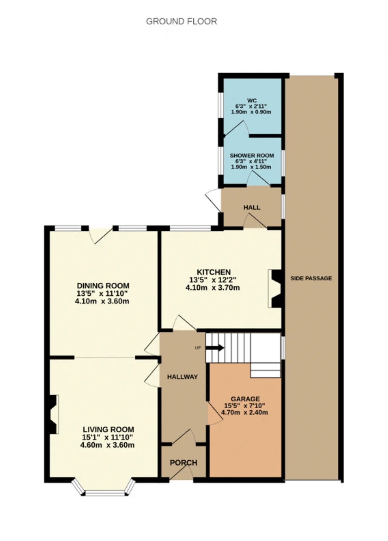 Garage 2.4m x 4.7m A full-sized car garage offering excellent versatility, ideal for use as secure parking, additional storage, or with potential to convert into an extra living space or home office.