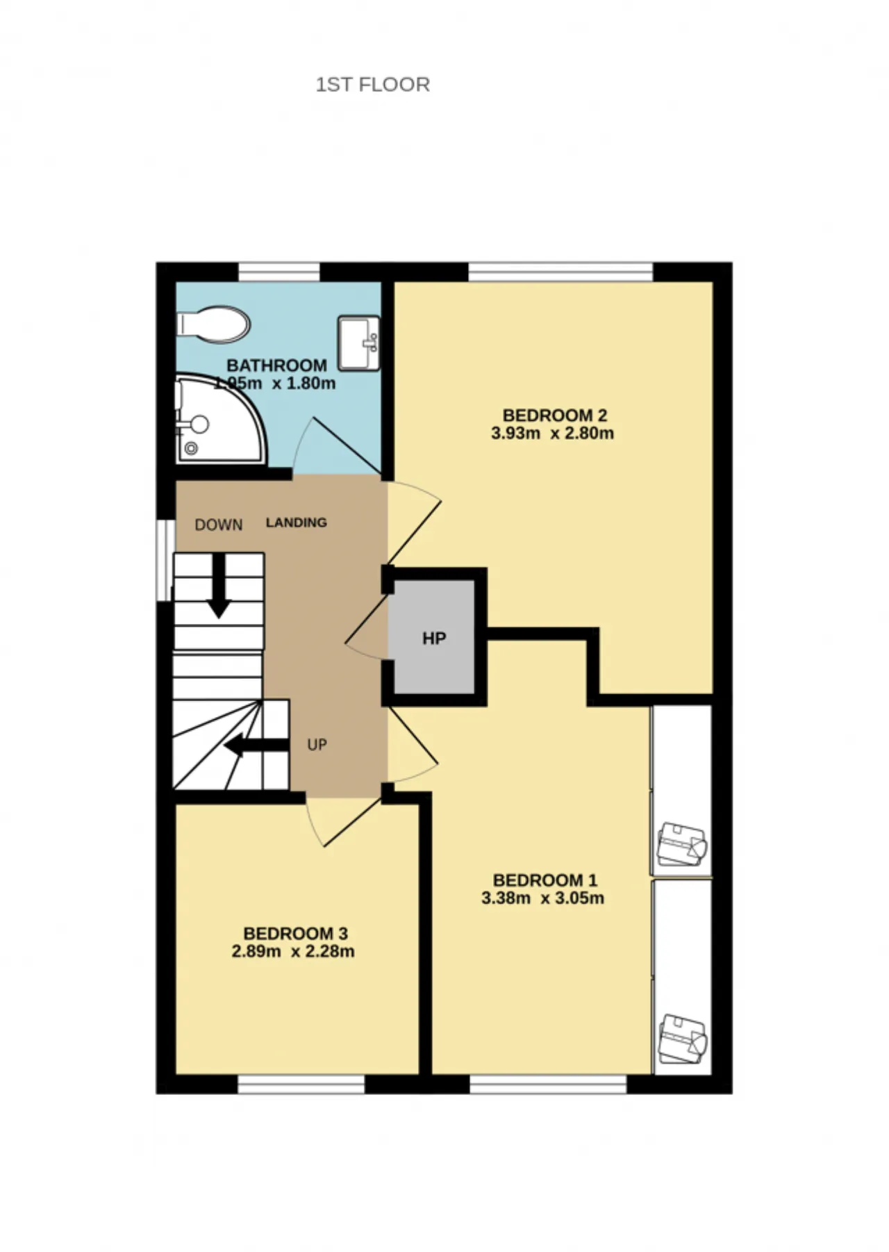 Bedroom 2 Double bedroom situated to the front of the house, with laminate, timber flooring. Sliding wardrobes provide excellent storage space.