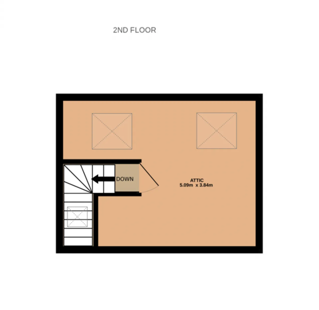 Converted Attic A fantastic attic conversion with laminate timber flooring and recessed lighting. Two skylights flood the room with natural light. Has convenient storage space in the eaves. Currently used as a bedroom but suitable for a number of uses, to include an ideal home office/study or another reception room.