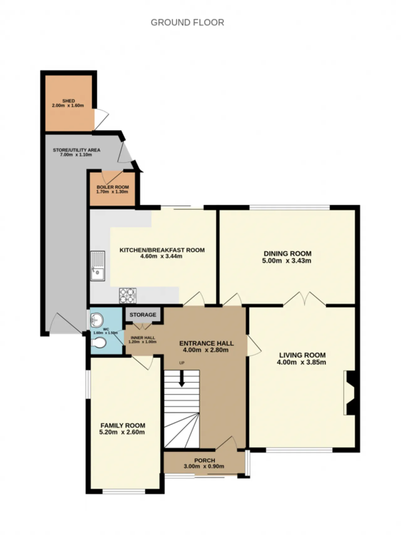 Boiler room 1.7m x 1.3m Contains gas boiler, extra storage space.