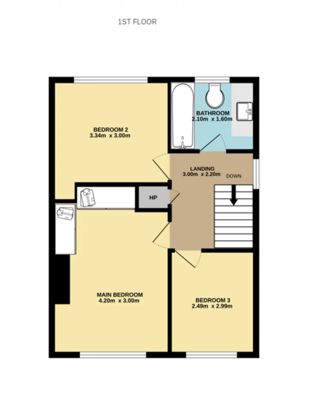 Landing 3m x 2.2m Bright landing with hot-press and access hatch to attic.
