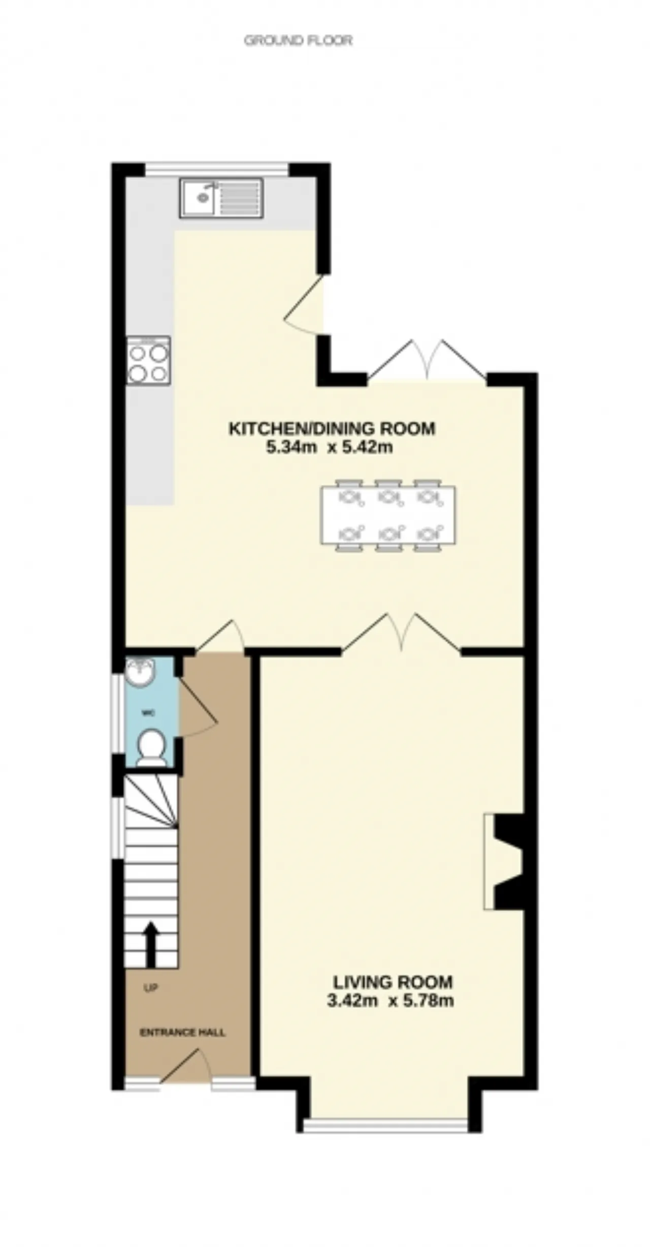 Kitchen/Dining Room An open-plan kitchen/dining room with a ruskic style laminate flooring. The kitchen has been fitted with a new kitchen units that have a great selection of floor and overhead storage as well as being fitted with a wood veneer counter top and a feature Belfast sink. There is an integrated oven, induction hob, microwave and fridge/freezer. Both double and single doors lead through to the substantial garden to rear.