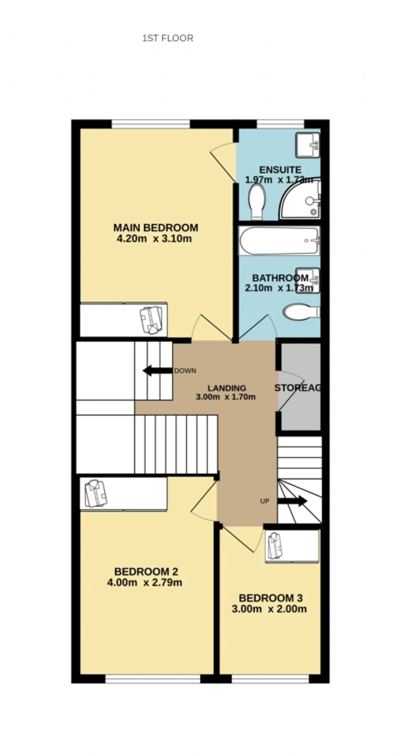 Bedroom 3 3m x 2m Good sized single bedroom to the front of the house with built in wardrobes.