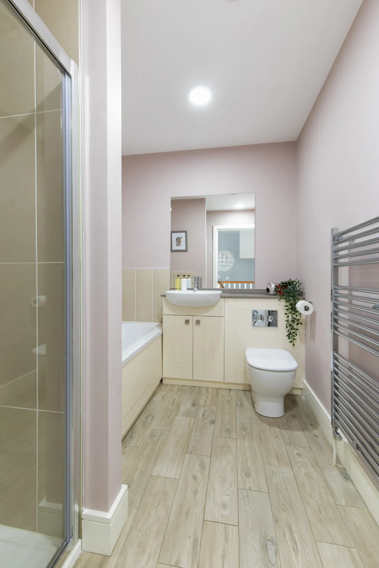 En-Suite 1.76m x 1.35m A good-sized, fully tiled ensuite with a shower, wc, wash hand basin and heated towel rail.