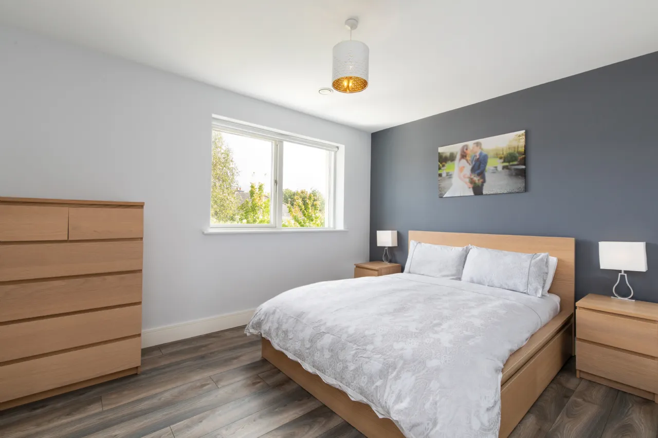 Main Bedroom 3.88m x 3m A large, double bedroom located to the rear of the house, with laminate, timber flooring and fitted wardrobes, providing excellent storage.