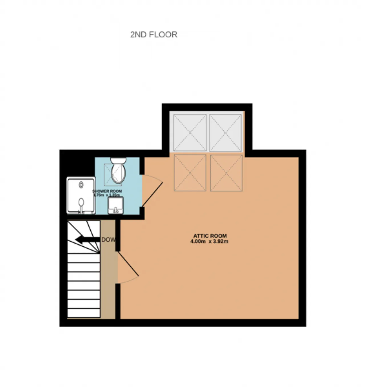 Attic Room 4m x 3.92m A highly-impressive, converted attic offering versatile space for families. Ideal as a bedroom, home office or playroom. A window seat provides a lovely feature to the room, which also benefits from storage in the eaves.