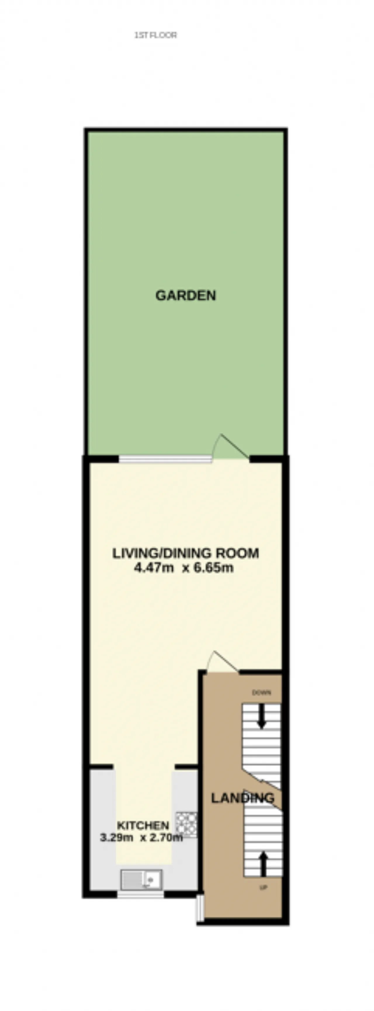 Living/Dining Room 4.9m x 4.4m Incredibly bright and spacious living area with a large window, with bespoke, high-quality curtains, flooding the room with natural light. Provides access to the sunny, easterly facing garden to rear. Finished with solid oak flooring.