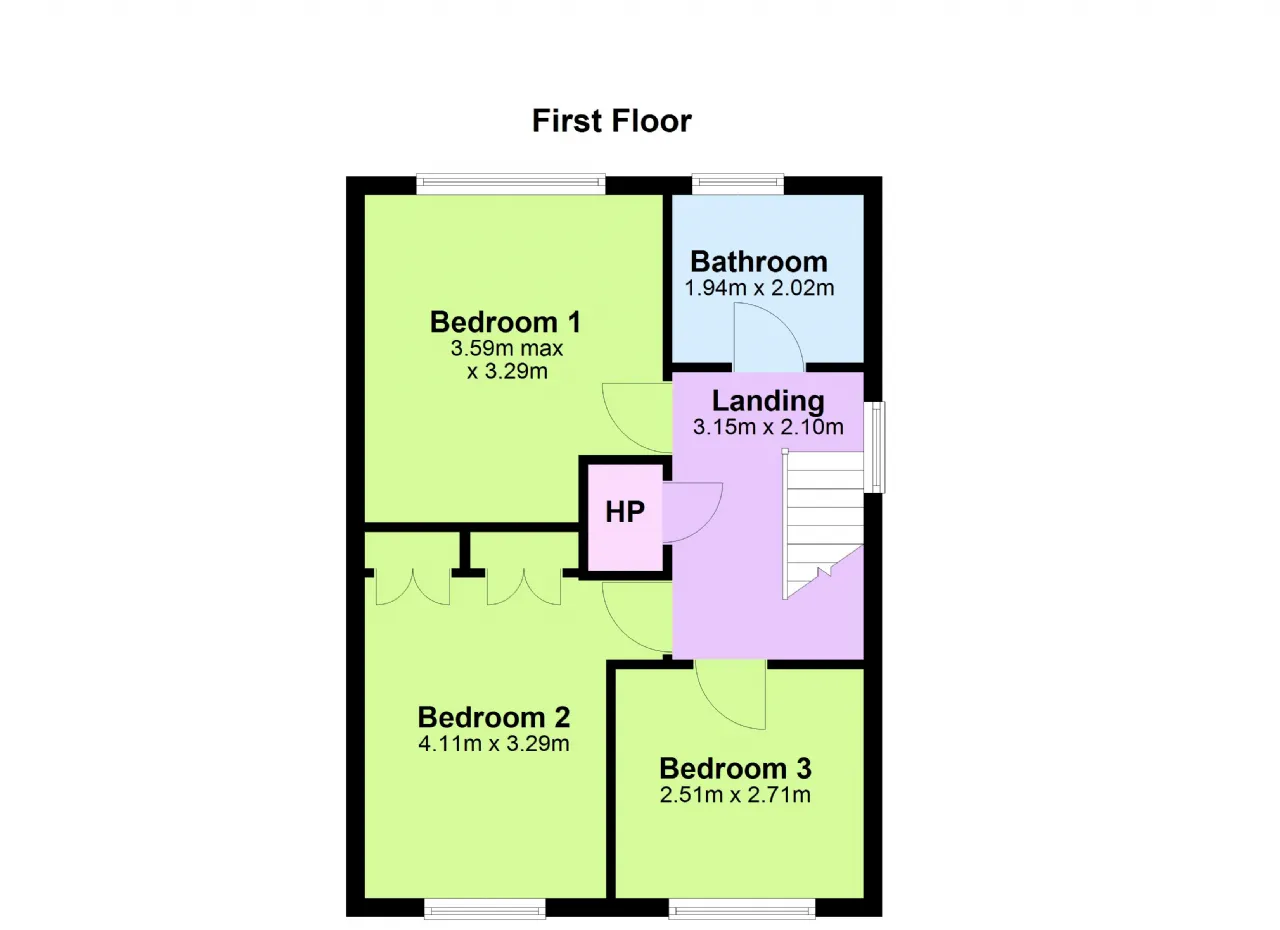 Bedroom 1 3.59m x 3.29m Double bedroom overlooking the south-facing rear garden.