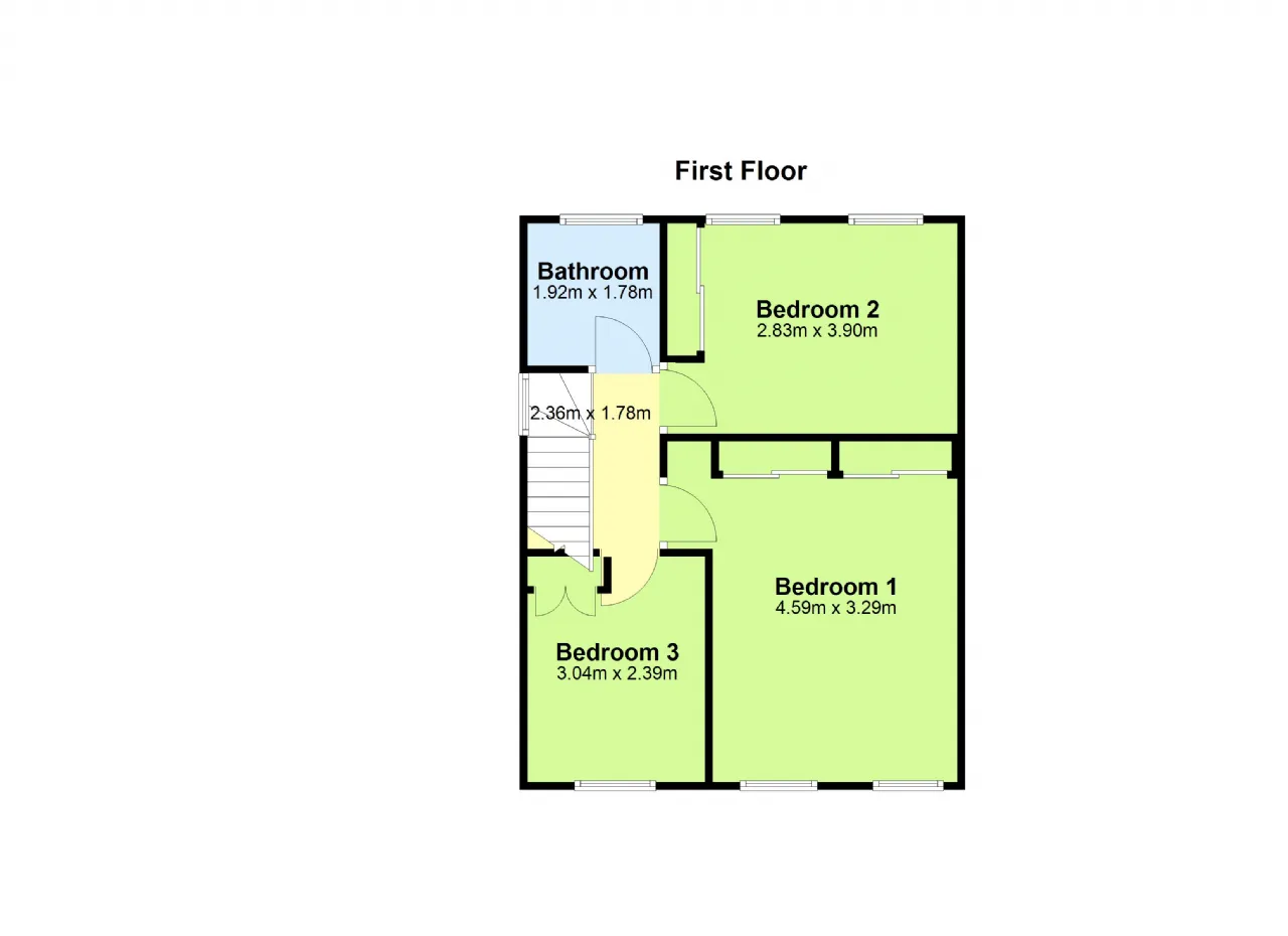 Bedroom 3 3.04m x 2.39m Spacious single bedroom to the front with solid wood flooring.