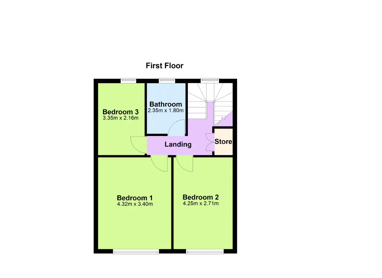 Bedroom 2 4.25m x 2.71m Built-in wardrobes, storage cupboards over, window overlooking front garden.