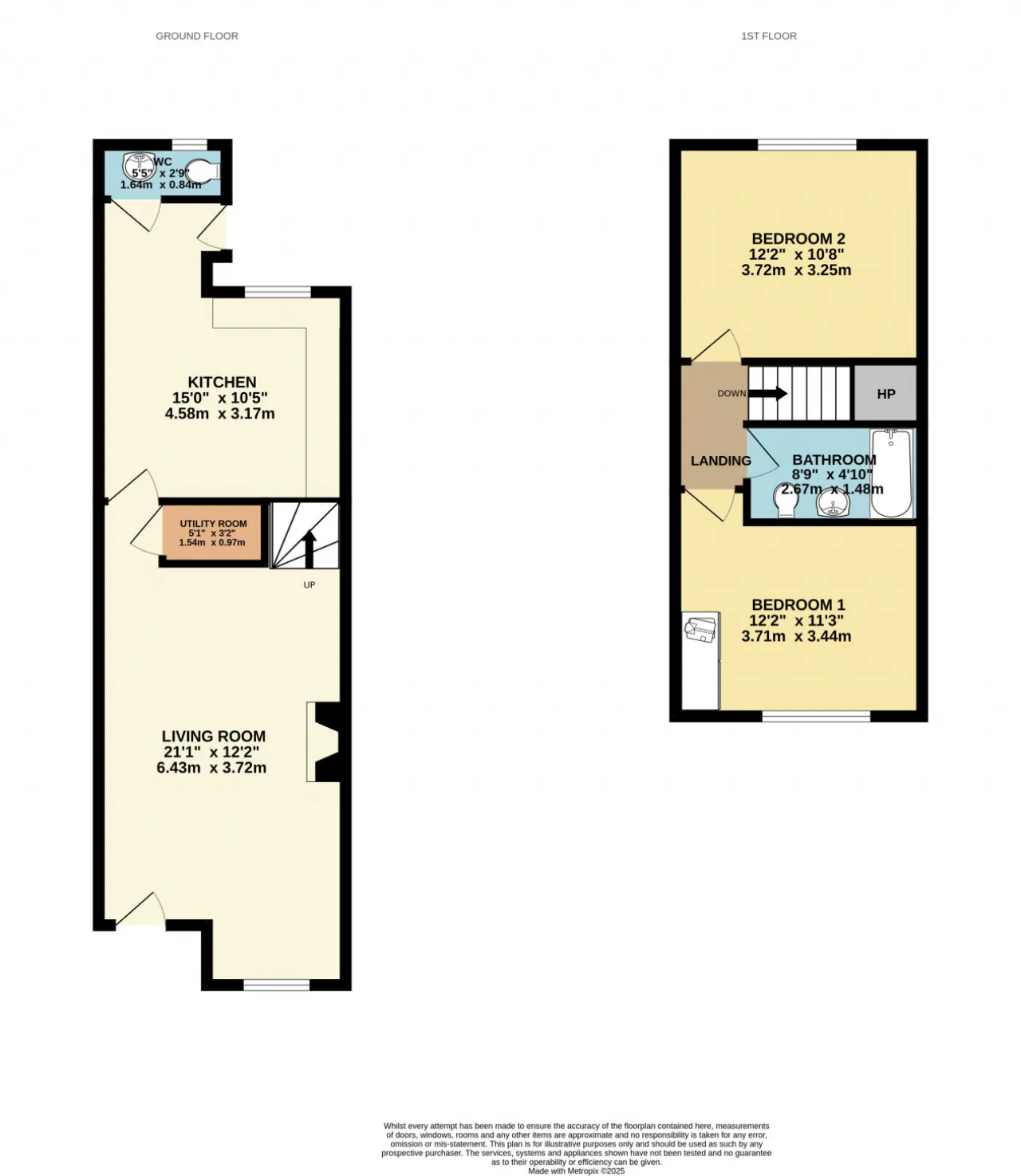 Bedroom 2 3.72m x 3.25m Double bedroom with built-in wardrobes and carpet flooring, located to the rear.
