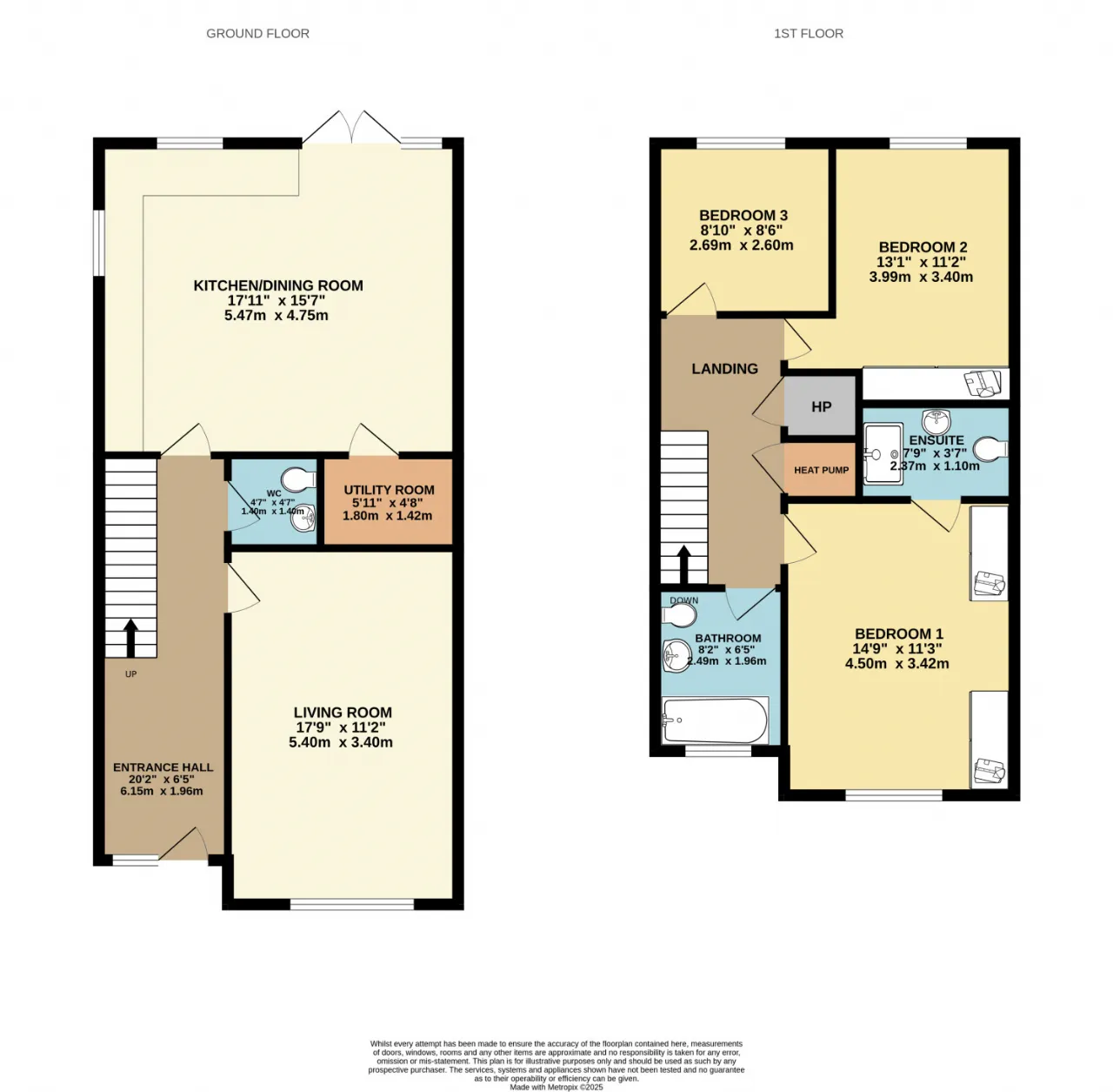 Bedroom 1 4.50m x 3.42m The master bedroom is to the front of the home with window to front aspect, built in wardrobes, carpeted flooring and a sizable en-suite.