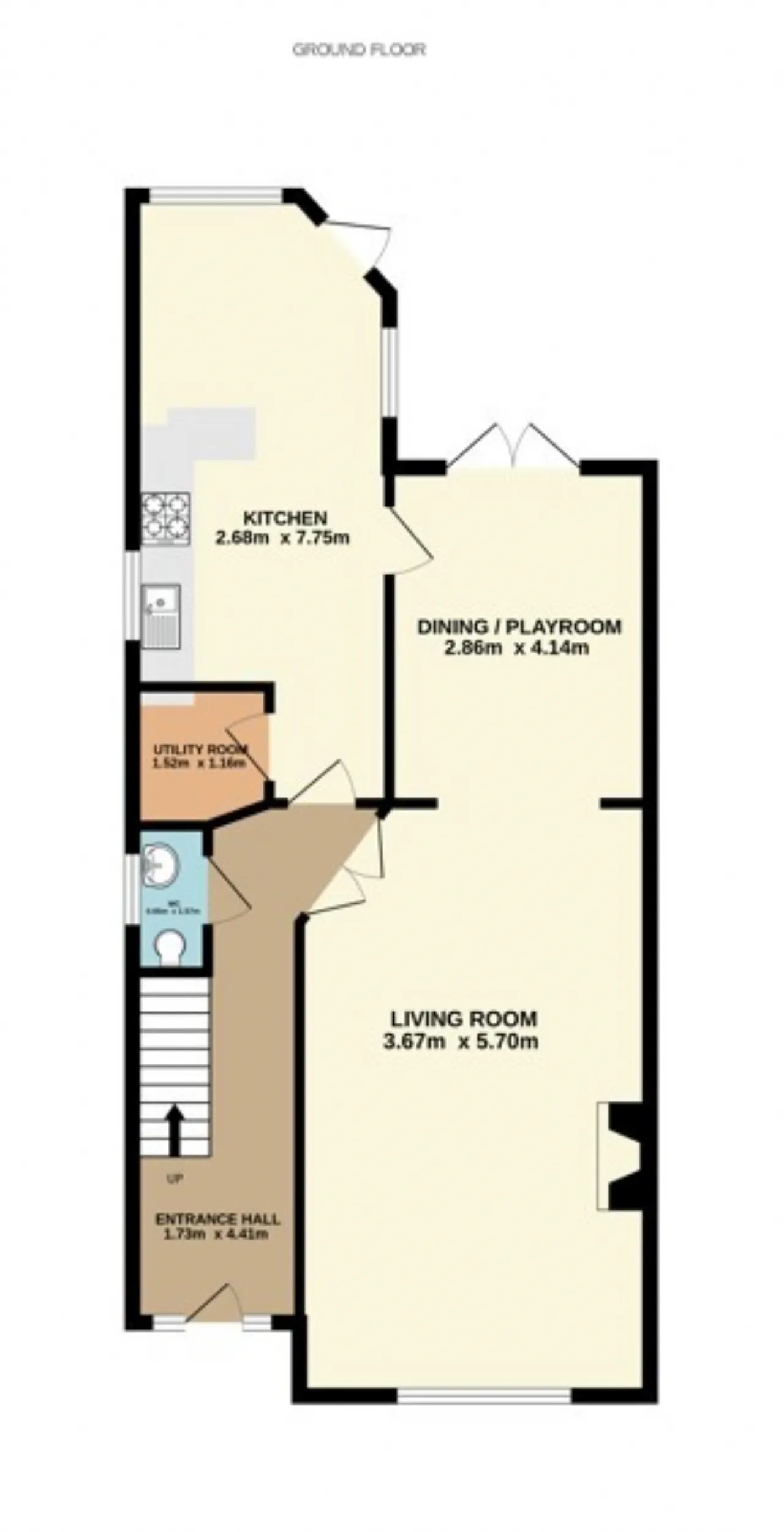 Dining/Playroom 4.14 x 2.86 This room has access to the kitchen and double glass doors open to the rear garden that provides an abundance of natural light to the space.