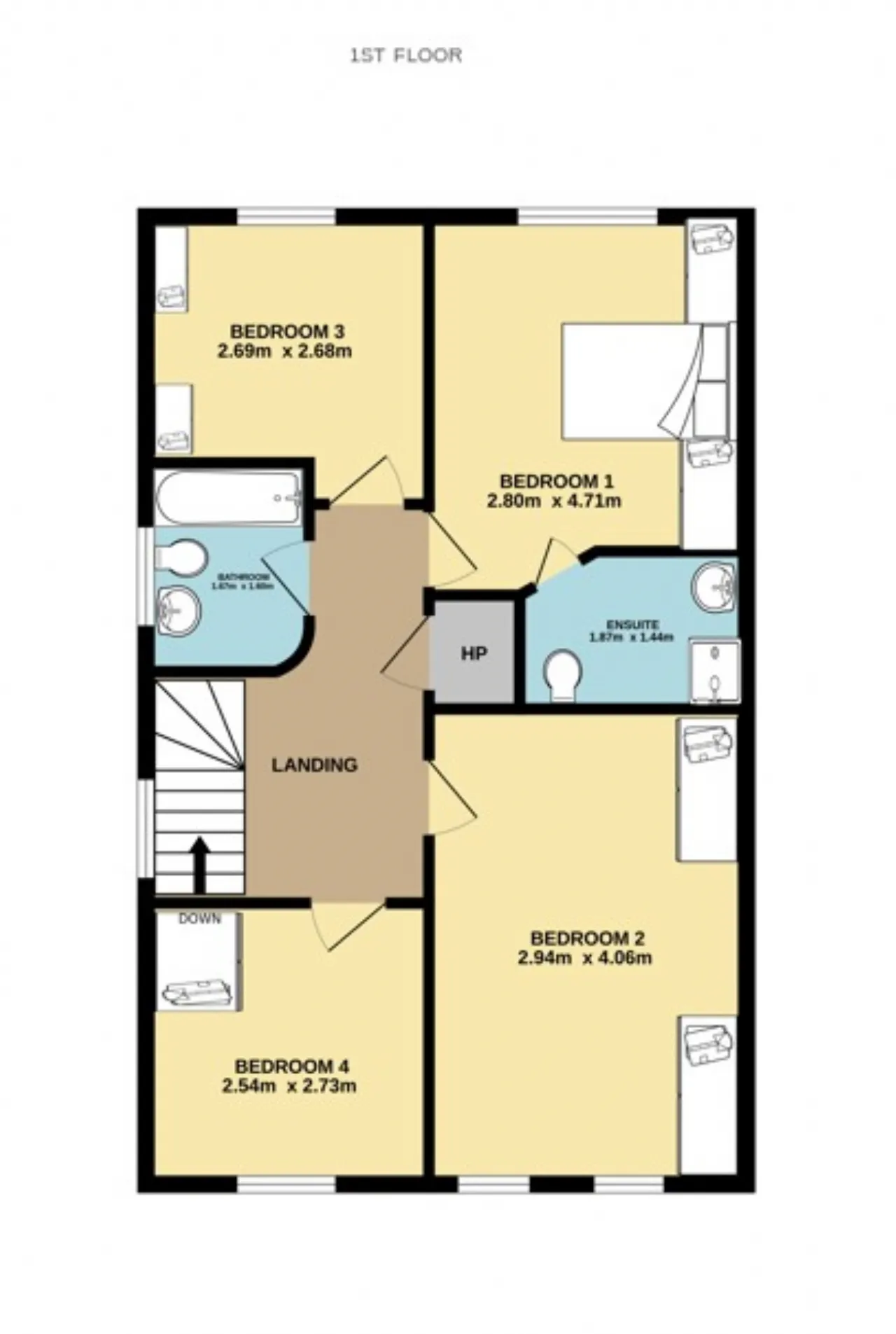 Bedroom 1 4.71 x 2.80 A great sized double room to the rear with wooden flooring, built in wardrobes and an ensuite.