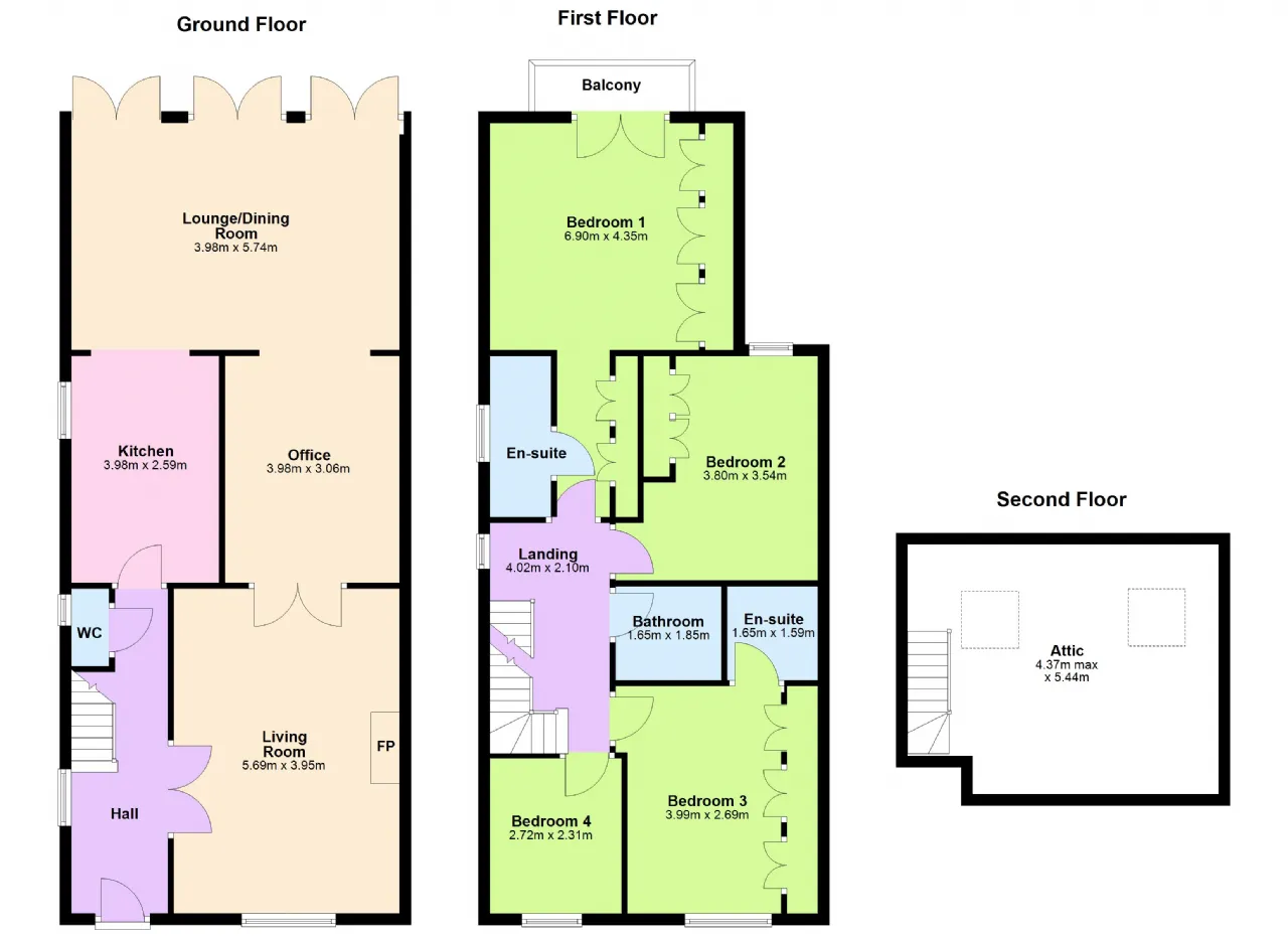 Bedroom 3 3.99m x 2.69m Another large double bedroom to the front of the house with built in storage units and an en suite shower room.