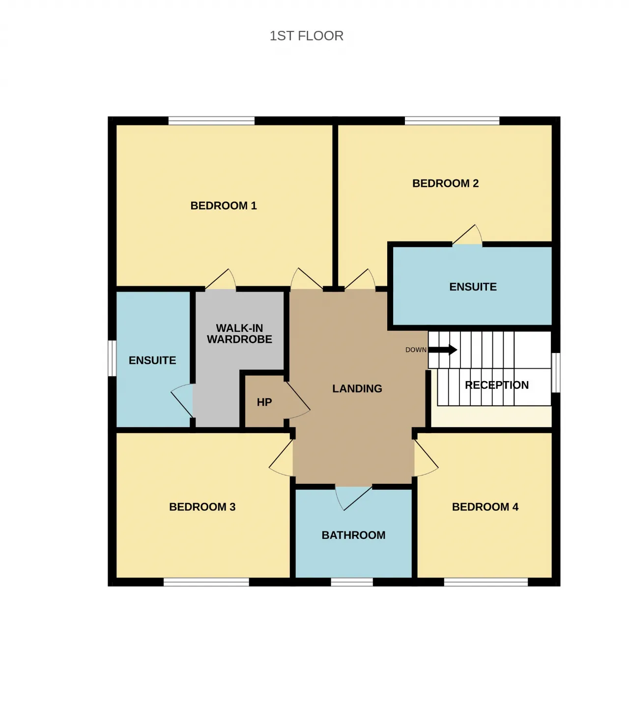 Bedroom 1 5.2m x 4.3m Oak wood flooring with walk-in wardrobe and ensuite access.
