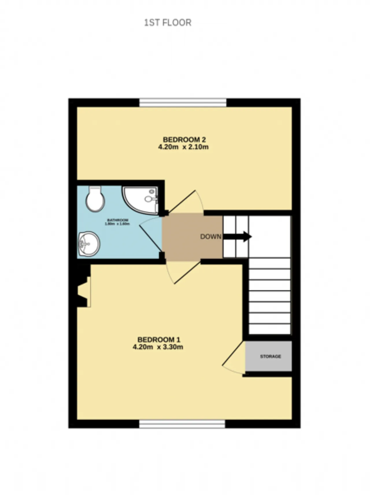 Bedroom 2 4.20m x 2.10m Sizeable double bedroom with window to rear aspect, wall-mounted radiator and laminate flooring.