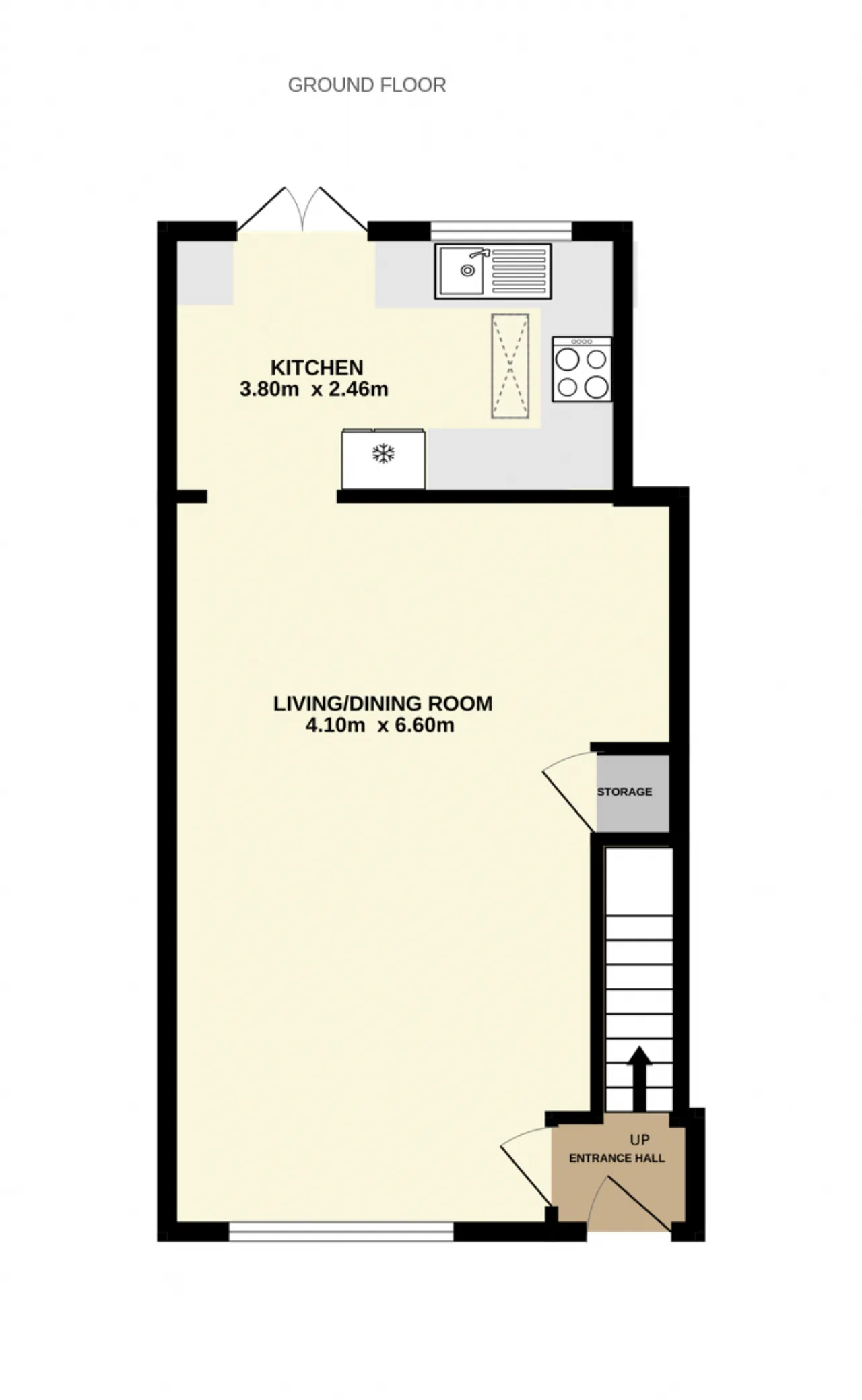 Living / Dining Room 4.10m x 6.60m Great sized living space with window to front aspect, understairs storage, laminate flooring and leading to the extended kitchen area.