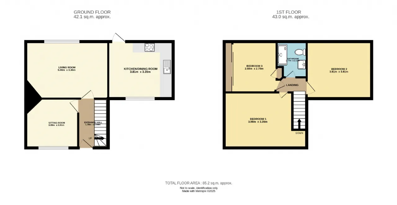 Upon entering this charming property, you're greeted by a light-filled and spacious entrance hall with a stairs to the first floor landing and opening to the sitting room and the living room. The sitting room is to the front of the property with timber flooring and a front facing window. The living room boasts generous proportions, featuring a rear-facing window, laminate flooring and double doors opening to the kitchen area.