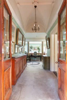 The spacious inner hallway leads to the grand gallery-style central atrium, from which the main reception rooms and bedrooms flow. This central hallway is a perfect showcase for a beautiful collection of books and artwork, adding to the property’s distinct character.