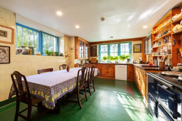 At garden level the rustic kitchen, equipped with an AGA and pantry opens off the main hall. This level also includes a wine cellar, games room, utility room, and a fifth bedroom. There is family/TV room which leads via a conservatory to the garden. There are several additional rooms on this level.