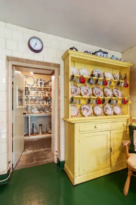 Freezer room/utility with original flagstone floors, double Belfast sinks, plumbed for washing machine. Generous storage