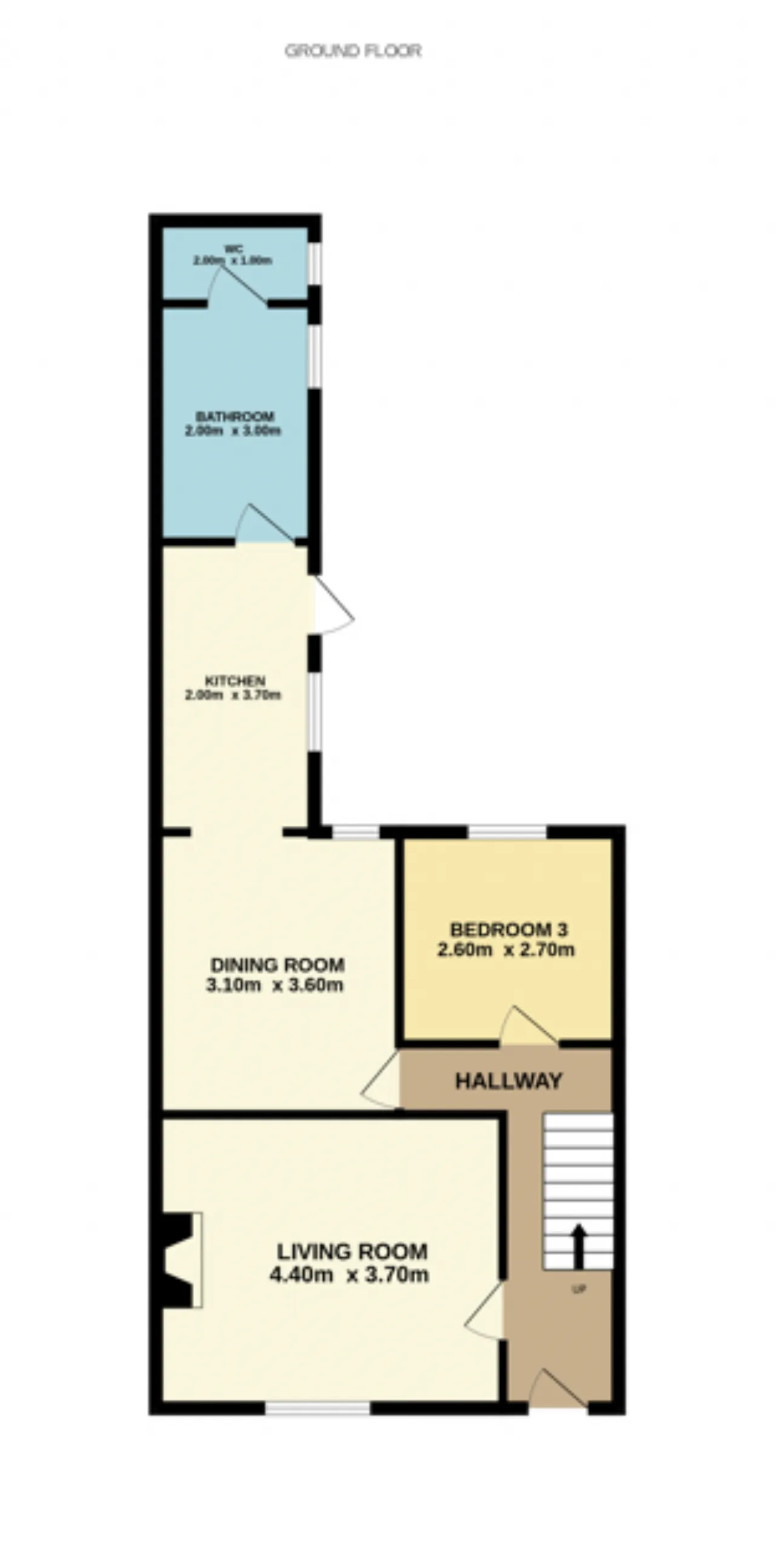 Bedroom 3 2.7m x 2.6m Located downstairs, this large single room has a great view of the rear garden.