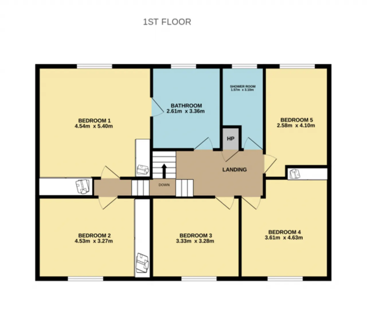 Bedroom Five: 2.58m x 4.10m double room with carpet flooring.