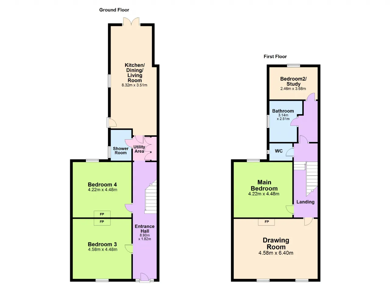 Bedroom 4 / Reception Room 4.22m x 4.48m Laminate wood floor, feature cast-iron fireplace, working window shutters, ceiling coving