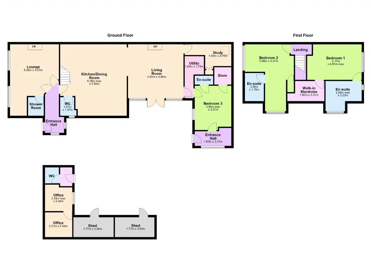 Upstairs, the property offers two exceptionally large double bedrooms. The master suite features an en-suite shower room with underfloor heating and a spacious walk-in dressing room, while the second bedroom also benefits from its own en-suite.