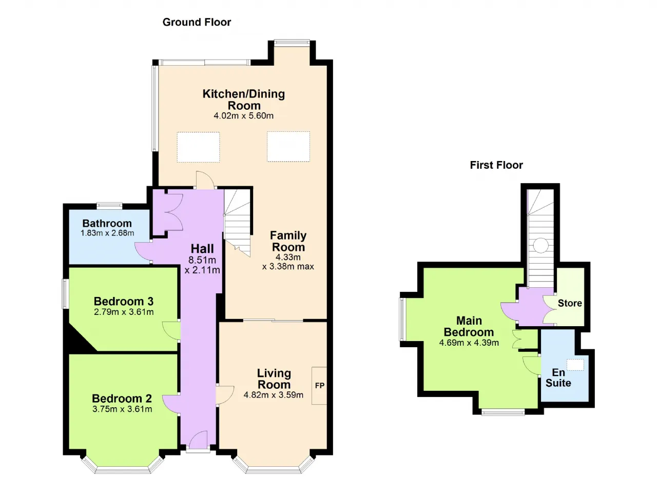 Bedroom 3 2.79m x 3.61m wood floor, picture rail, feature original fireplace