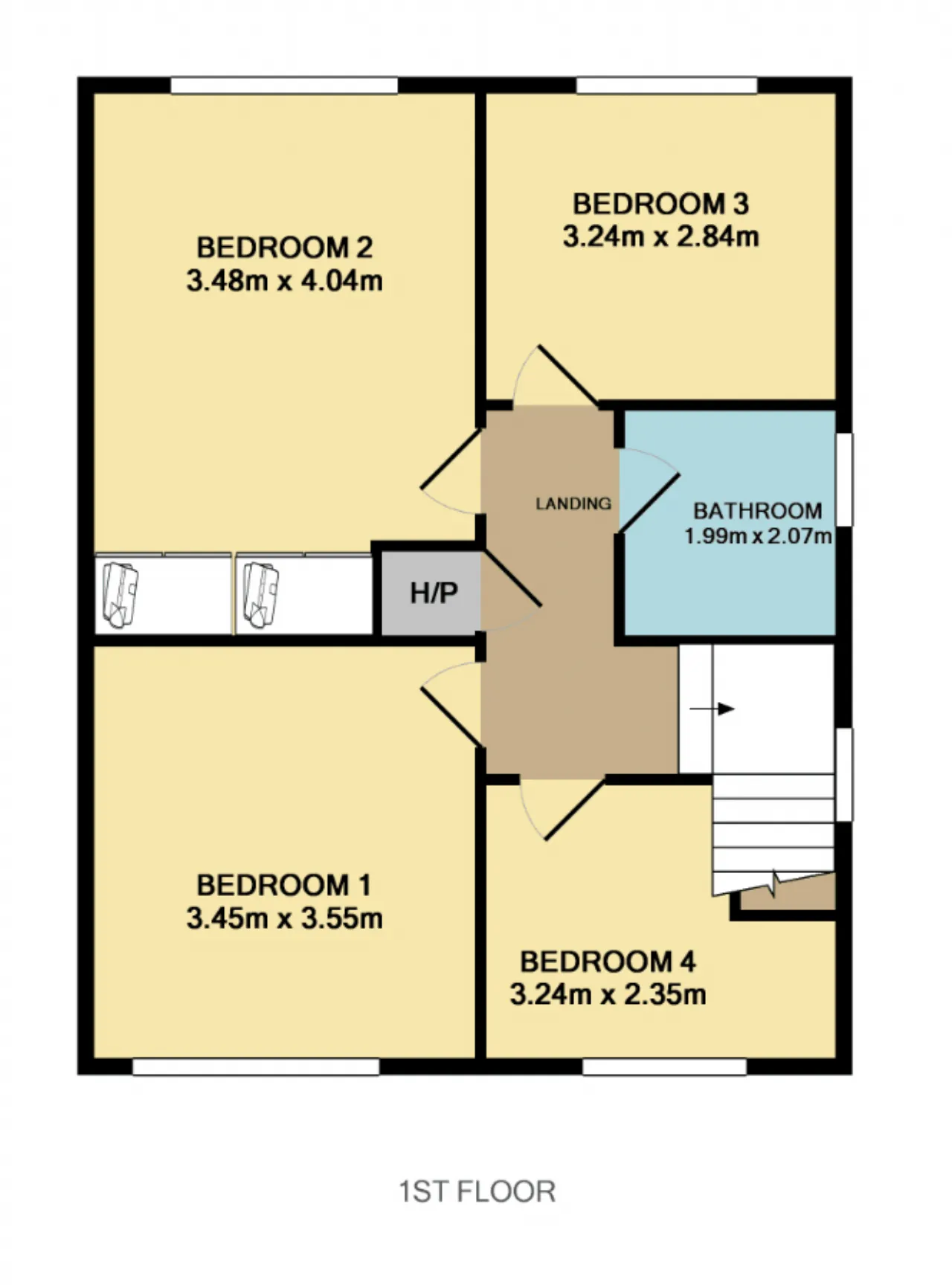 Bedroom 1 3.55m x 3.45m Double bedroom with carpet floor.