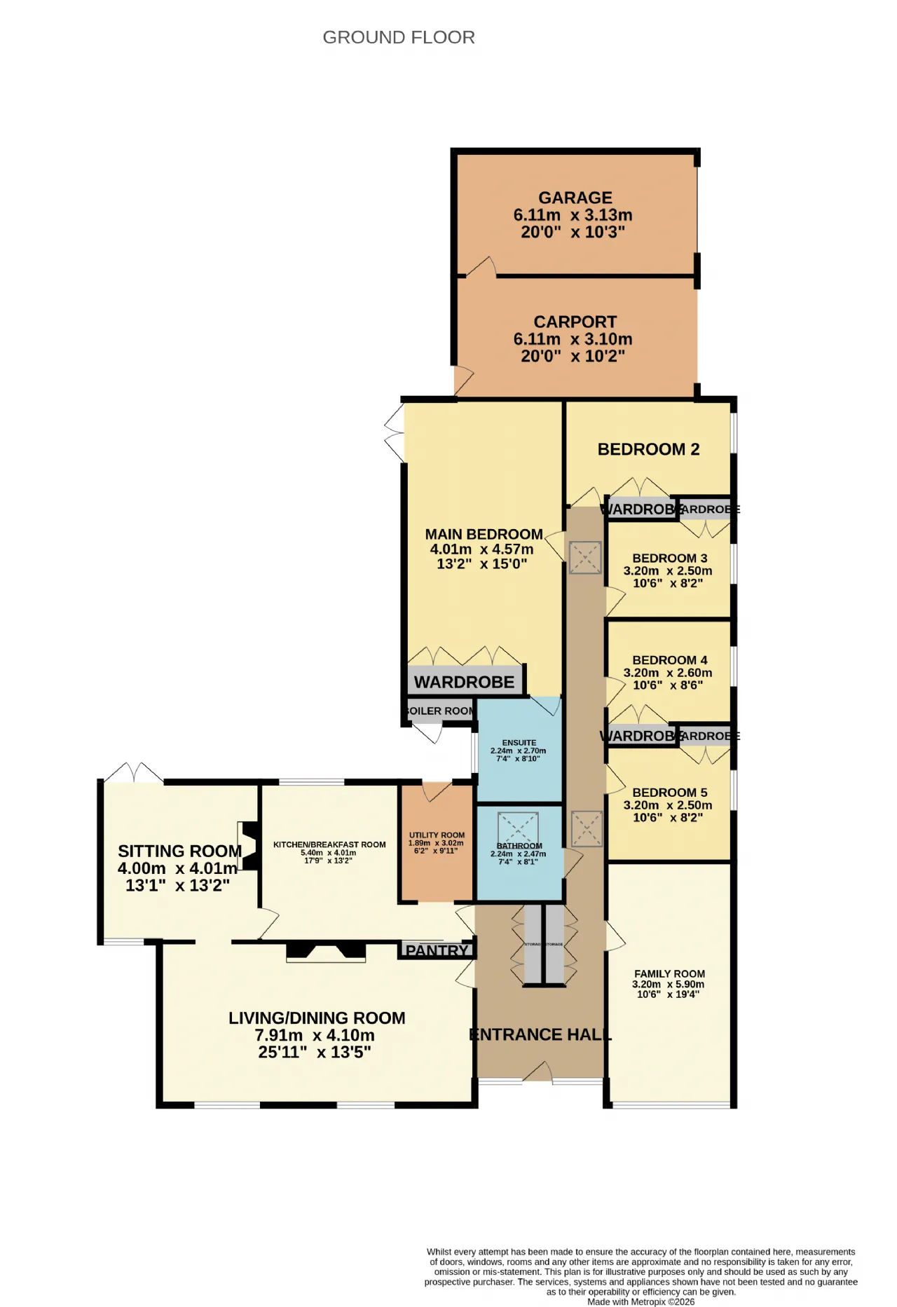Bedroom 5 This good-sized double room with fitted wardrobes and window to the rear garden.
