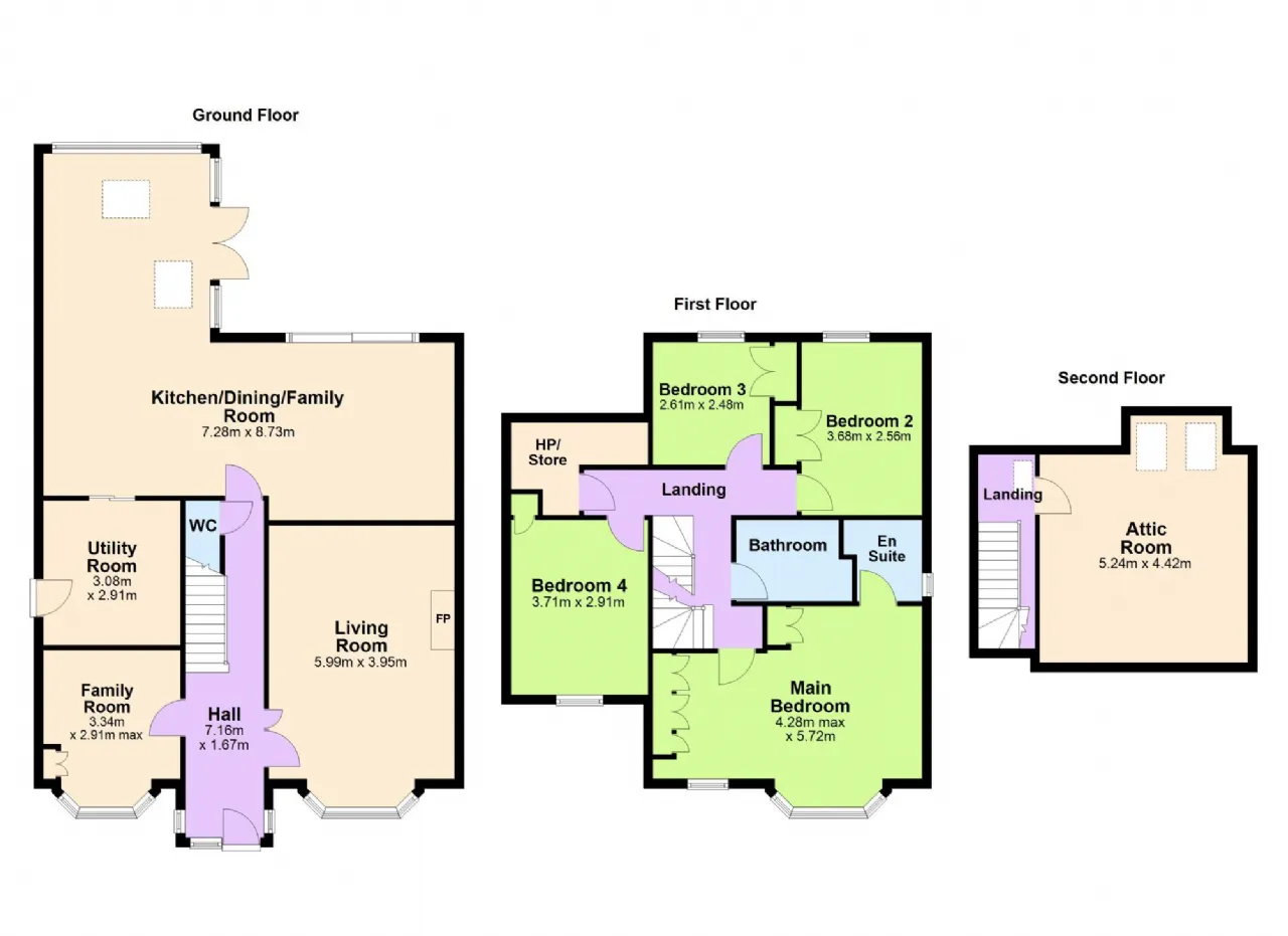 bedrooms and a good size single bedroom all with fitted wardrobes, a family bathroom with the main bedroom is complete with en-suite shower room. The attic is incredibly large and has been converted with roof windows to the rear and eaves storage. This space is currently used as a guest bedroom and home office.