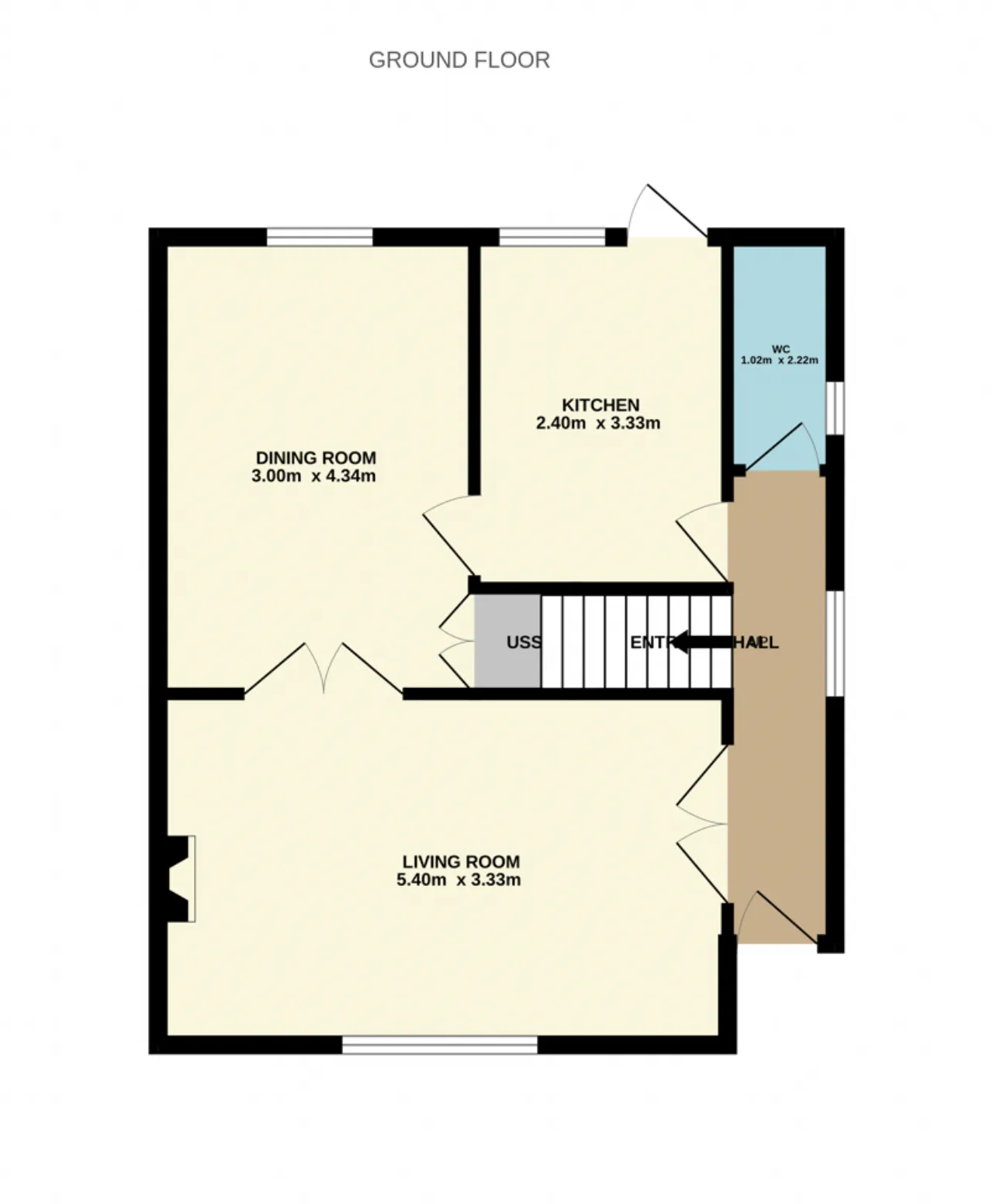 Dining Room 4.34m (14'3") x 3.00m (9'10") with wooden flooring and access to under stairs storage.
