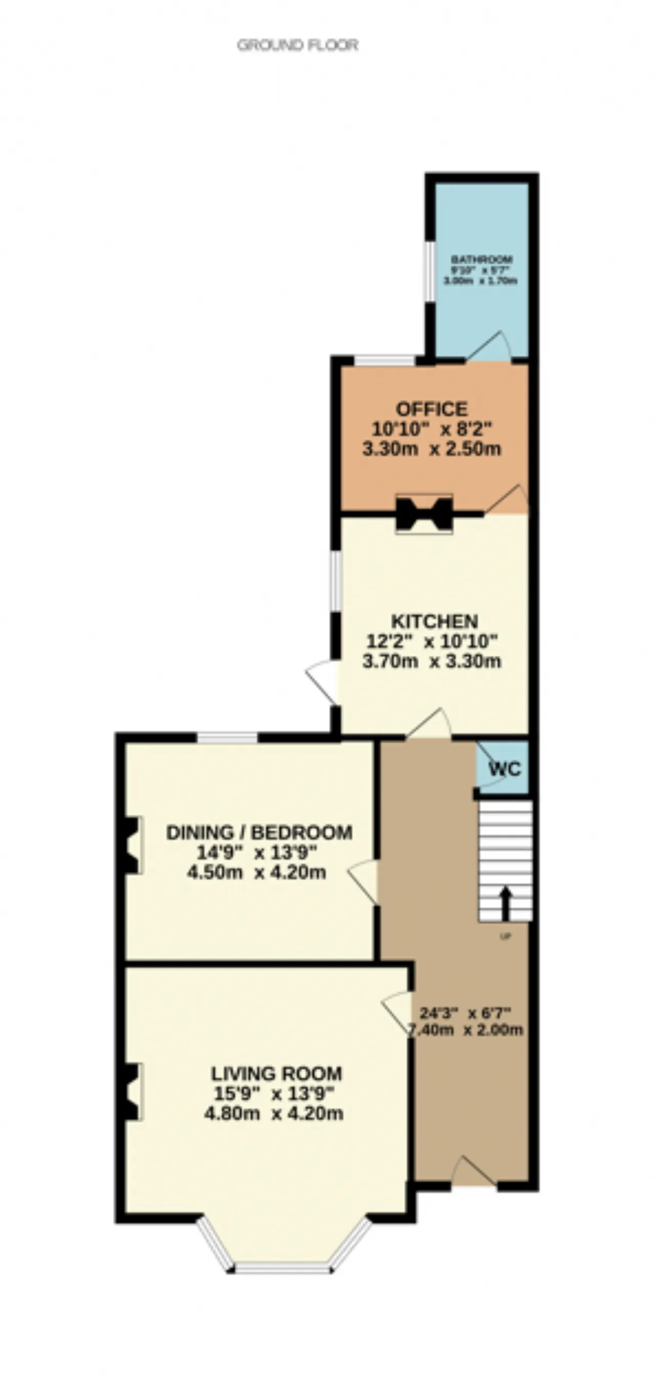 Living Room 4.8m x 4.2m This is a very spacious reception room to the front with a bay window flooding the room with light. Many of the original features remain such as an impressive marble fireplace with tiled inset, polished wooden floor, ceiling covings and ceiling rose.