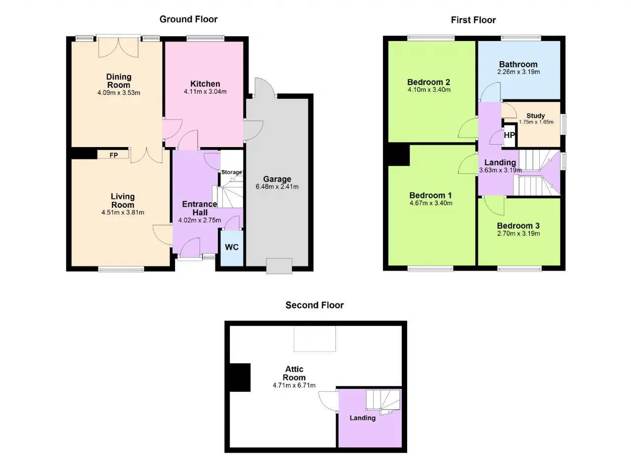 Attic Room: 4.71m x 6.71m Solid wood flooring, tongue and groove ceiling panelling, central light, eaves storage with five Velux windows, feature stainless window overlooking stairwell