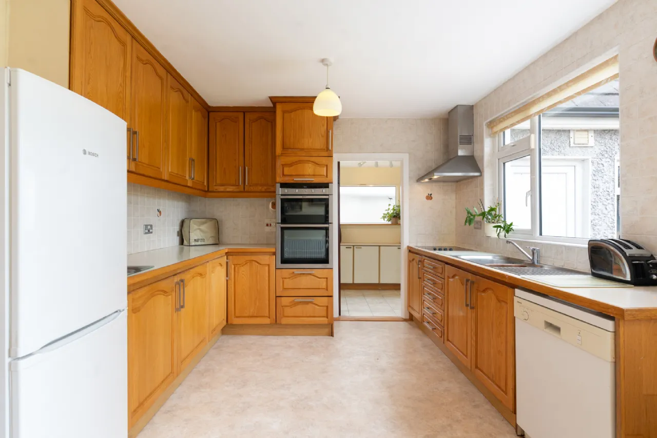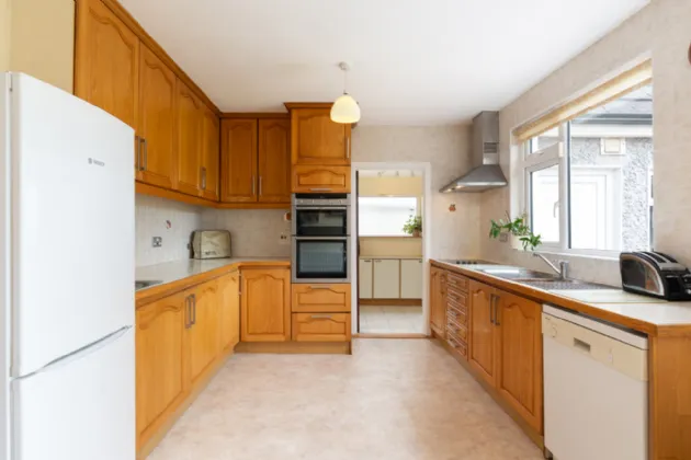 Kitchen/Breakfast Room 3.31m x 5.25m central light, pantry, floor and eyelevel cabinets, tiled splashback stainless steel one and a half sink unit, electric hob and extractor fan, electric double oven, standalone fridge freezer, door to:-