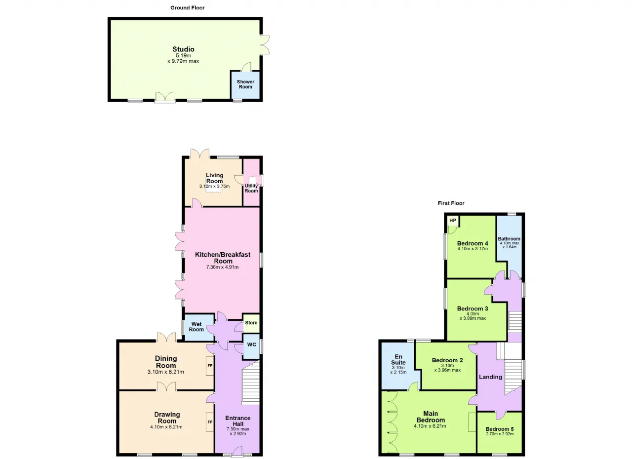 At the end of the garden is an original coach house which has been renovated and is currently used as a studio with a wood burning stove and shower room. There is access from here to the vehicular laneway to the side of the property.