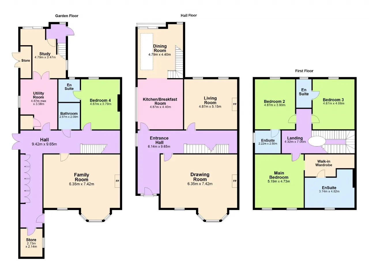 Family Room/Bedroom 5 6.35m x 7.42m limestone floor, ceiling coving, sliding sash window, bay window, recessed lighting, original fireplace surround with woodburning stove. Previously laid out as a separate reception room and fifth bedroom and easily returned to that layout.