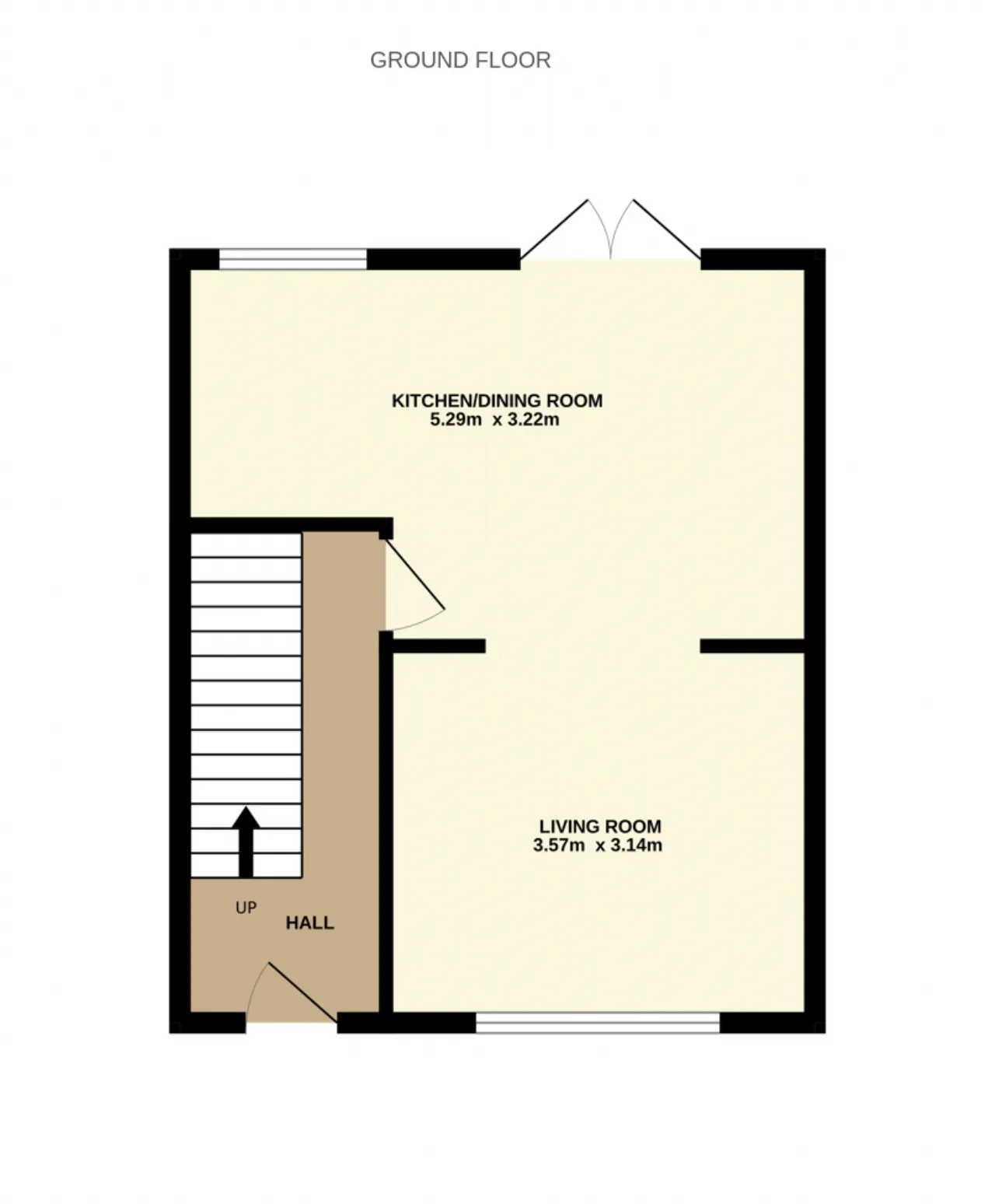 Kitchen/Dining Room 5.29m x 3.22 Open plan design with access to the rear garden, built-in floor-to-ceiling storage units.