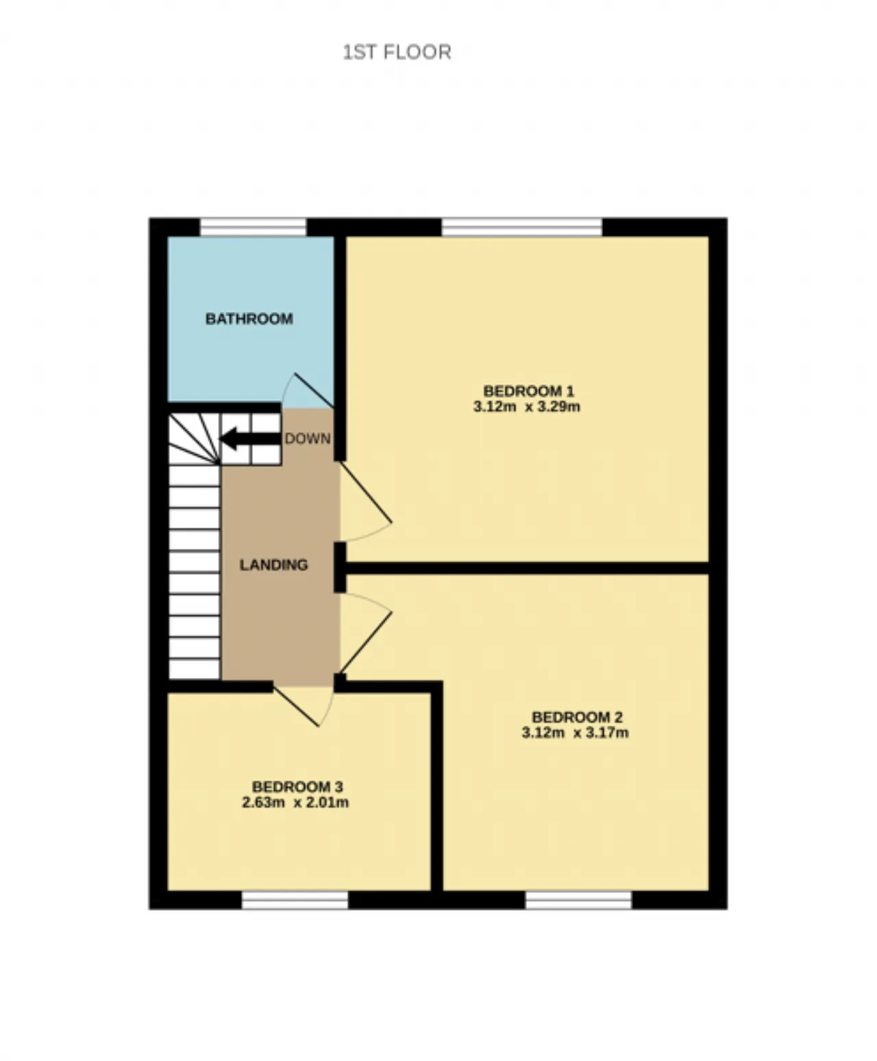 Bedroom 3 2.63m x 2.01m Overlooking the front garden, a single bedroom with built-in wardrobes.