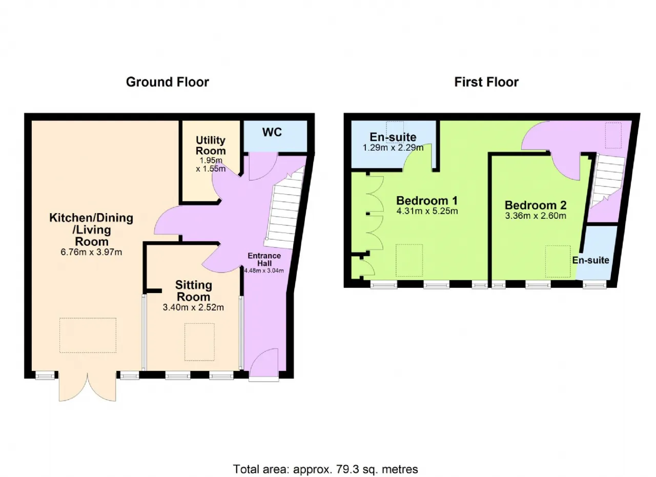 Bedroom 1 Large double room with fitted wardrobes, Velux skylight and three windows overlooking front patio.